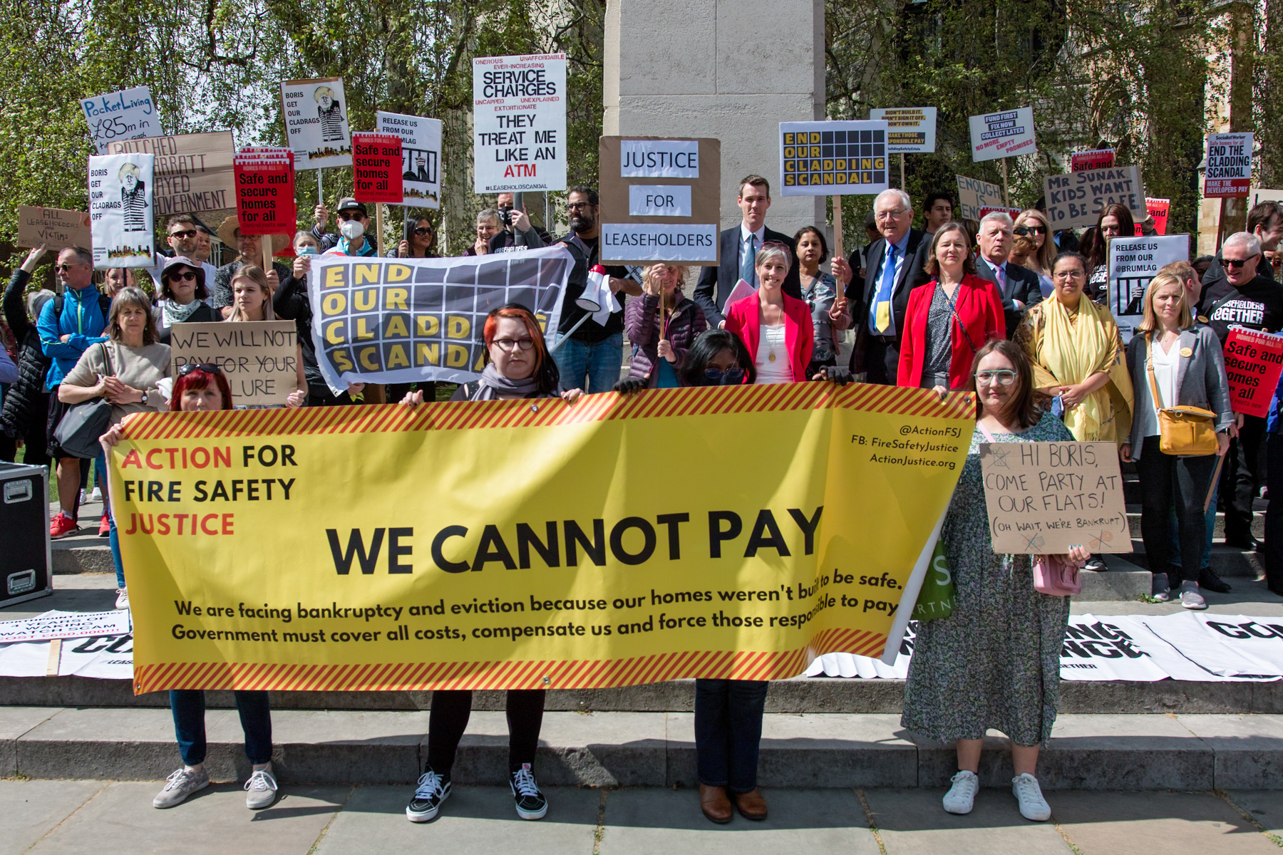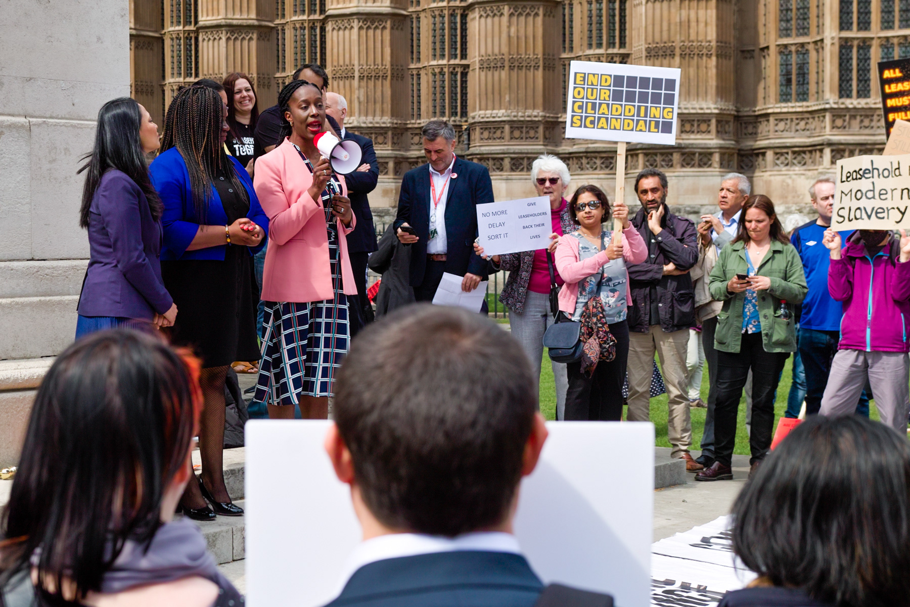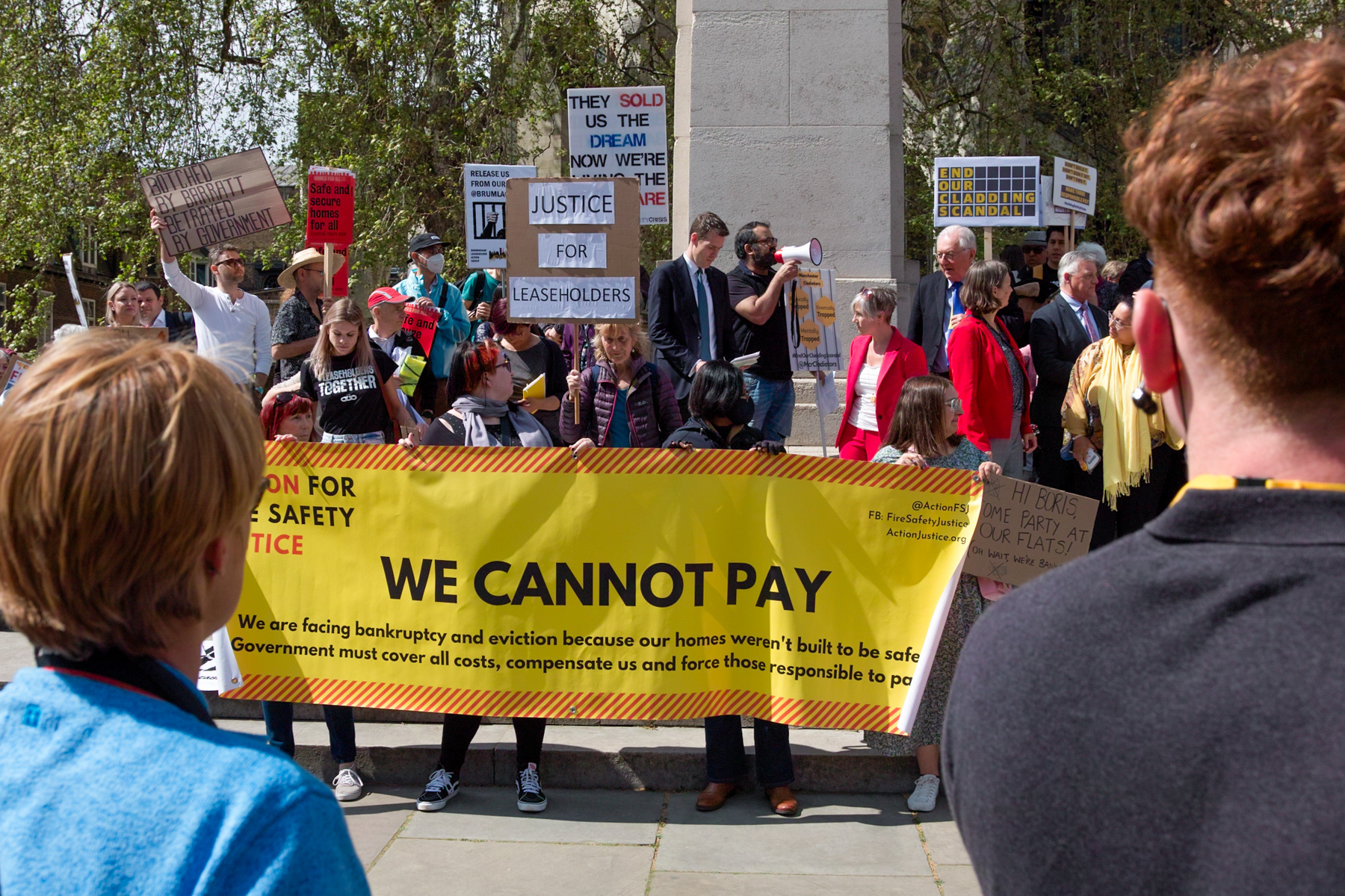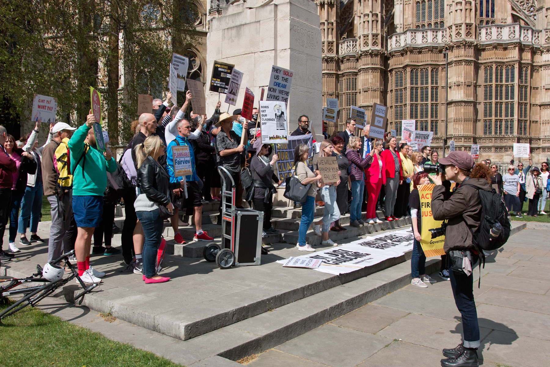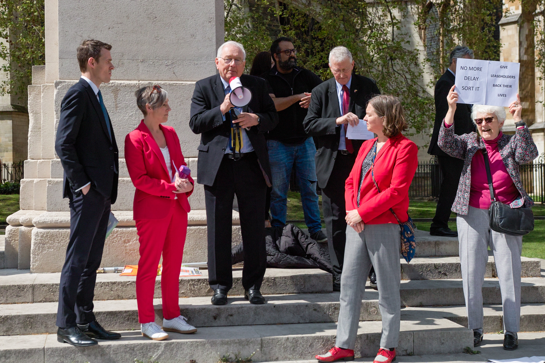 This protest rally on College Green, Westminster was organised by End Our Cladding Scandal campaign. It was the final chance for leaseholders to make their voices heard in advance of the Building Safety Act 2022 which was in debate before the new parliamentary session. Despite the protections announced by the Bill, which became law on the 1st April 2023, many leaseholders continue to remain trapped by the building safety scandal.