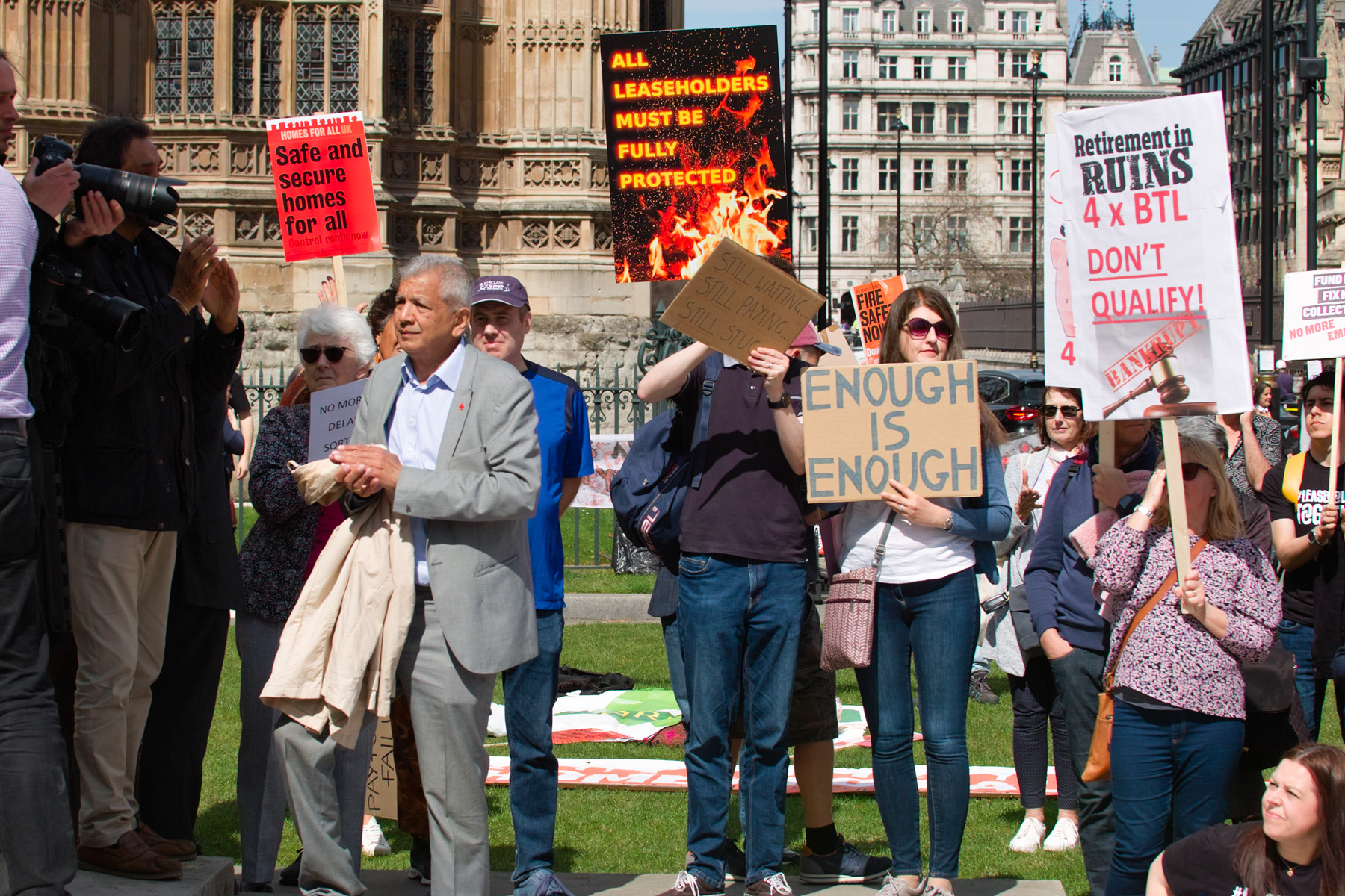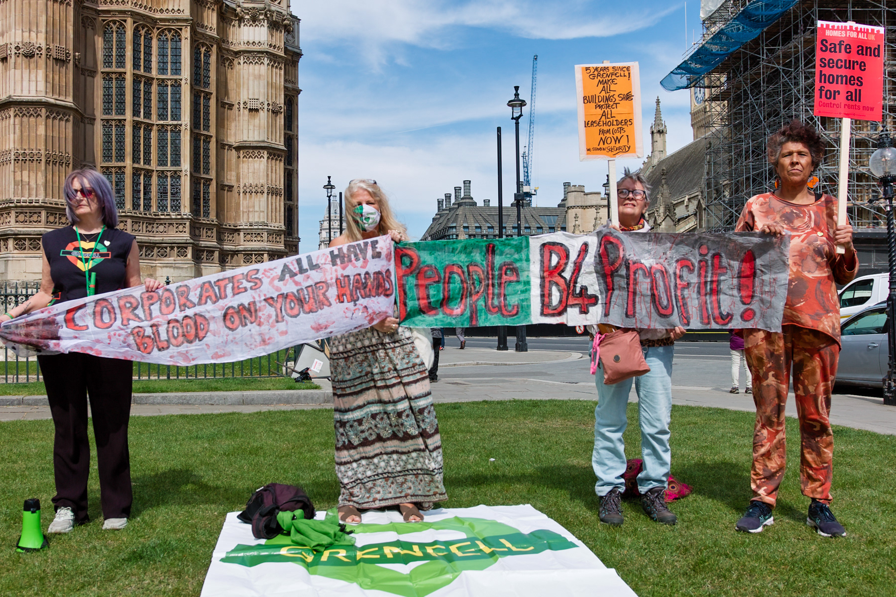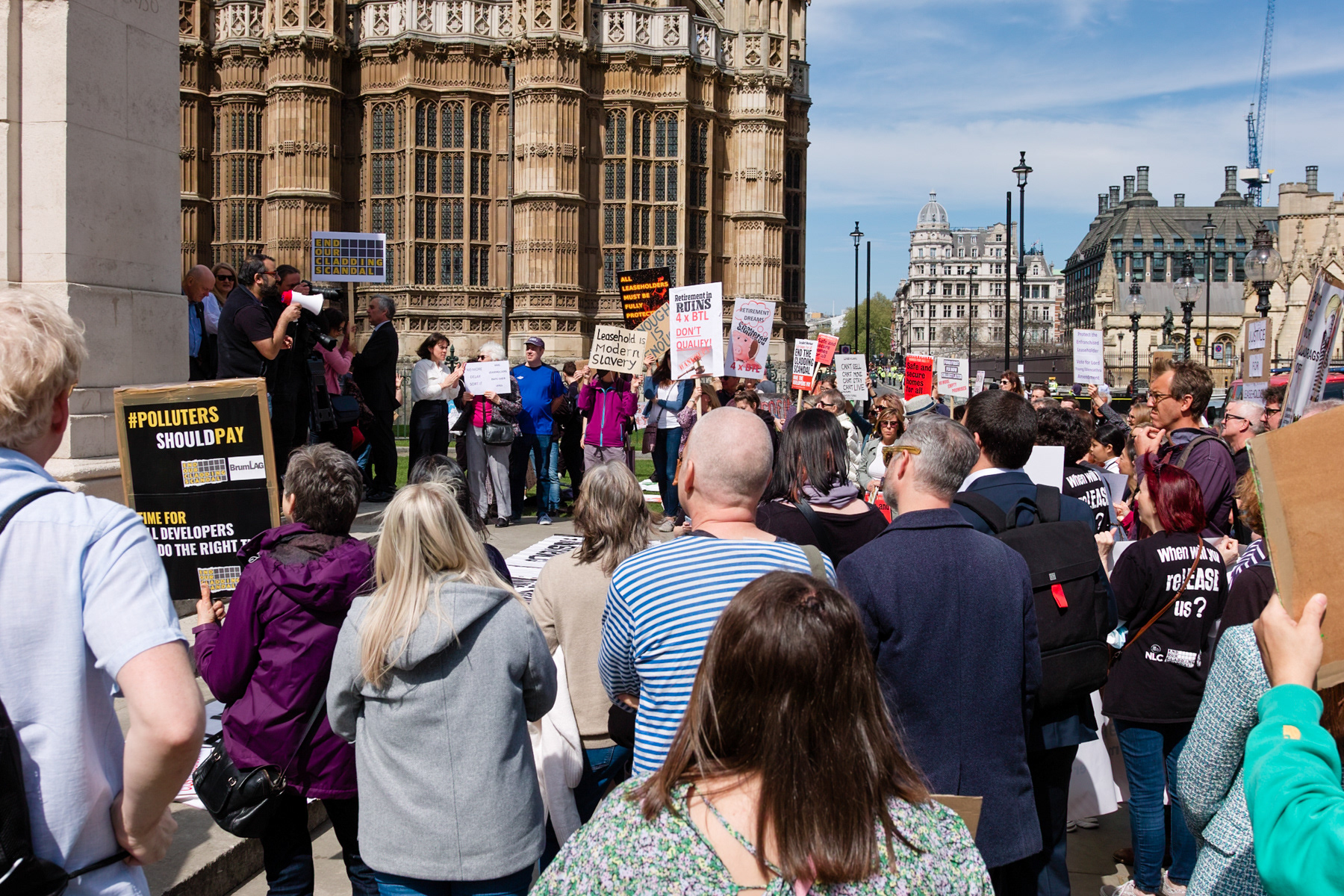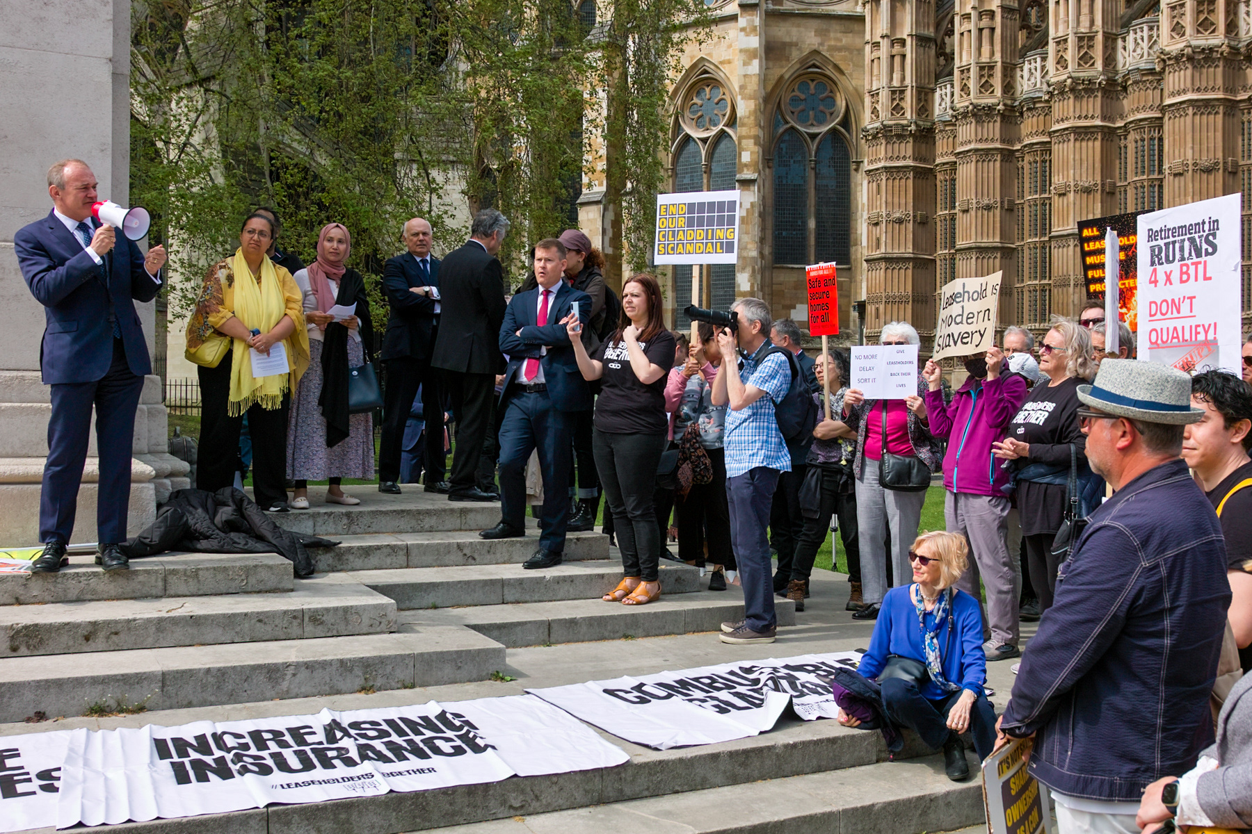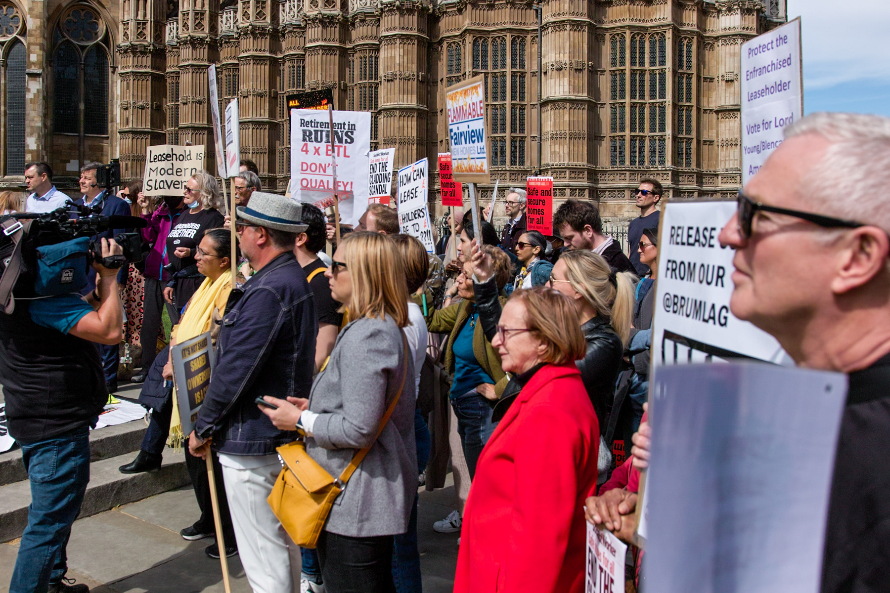 This protest rally on College Green, Westminster was organised by End Our Cladding Scandal campaign. It was the final chance for leaseholders to make their voices heard in advance of the Building Safety Act 2022 which was in debate before the new parliamentary session. Despite the protections announced by the Bill, which became law on the 1st April 2023, many leaseholders continue to remain trapped by the building safety scandal.
